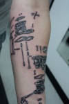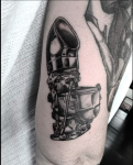 Stop Press (again): We just found new new Stromberg tattoos! The cool linkage side view with the scoop was inked by Agency Tattoo in New Zealand for their client Sharon, while the crazy exploded view was done by Larson’s Tattooing of Mandan ND, USA. There are no contact details on their website so if you know them, we’d love to give proper credit, of course.